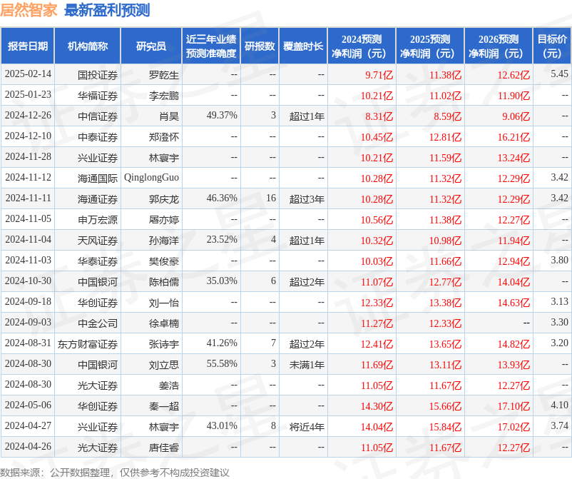 最新盈利预测明细如下: